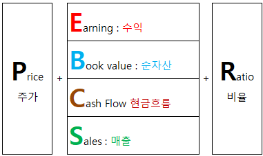 - 공식 : (시가총액 / 순이익) = (현재 주가 / 기업의 주당 순이익 )