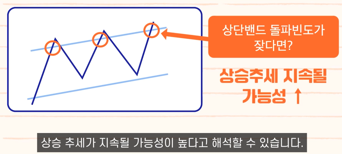 - 밴드 폭 확장: 변동성이 커질 때 추세 시작 가능.