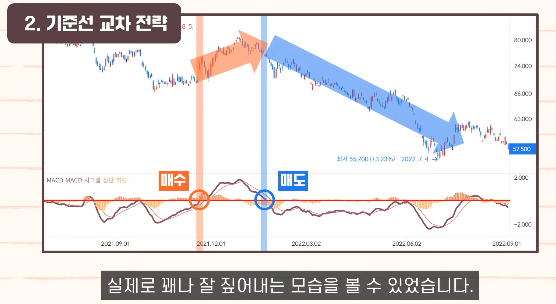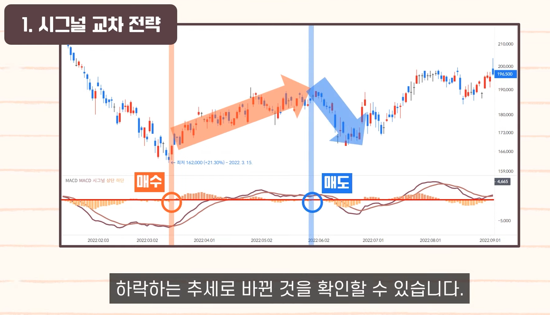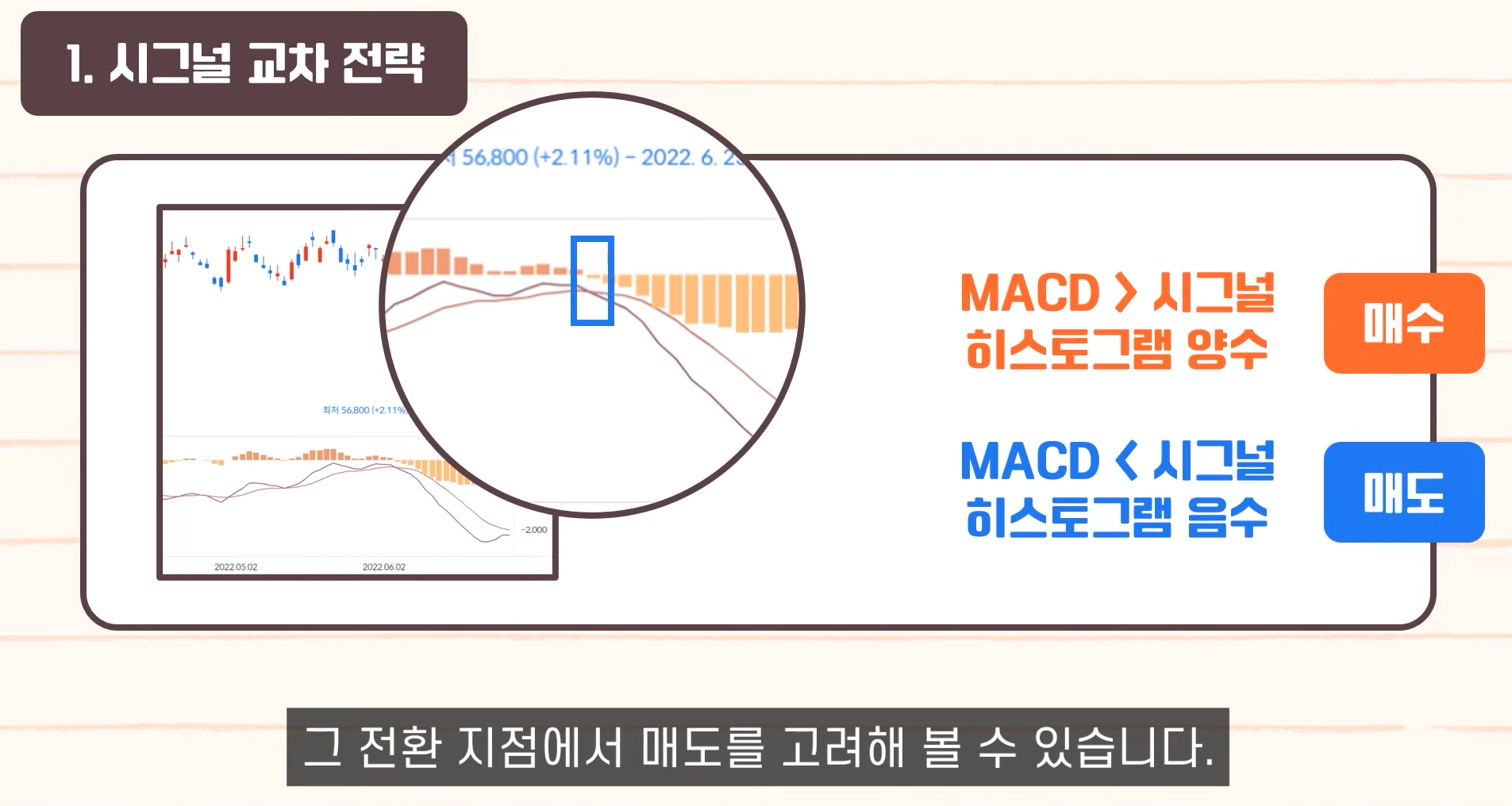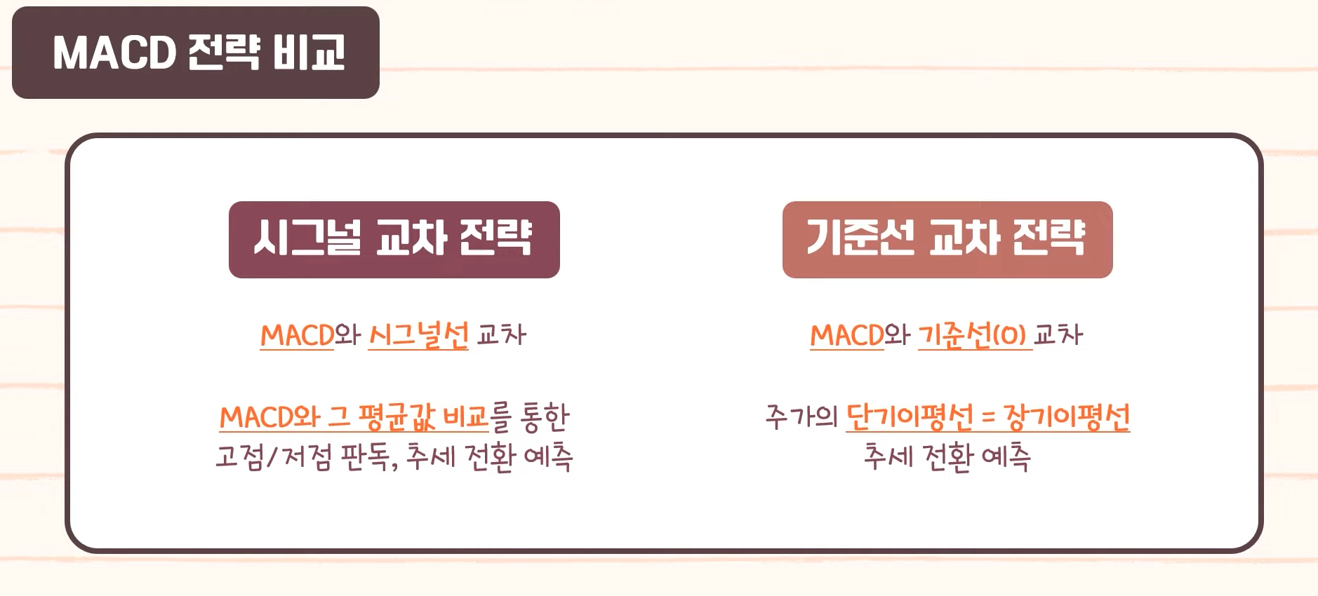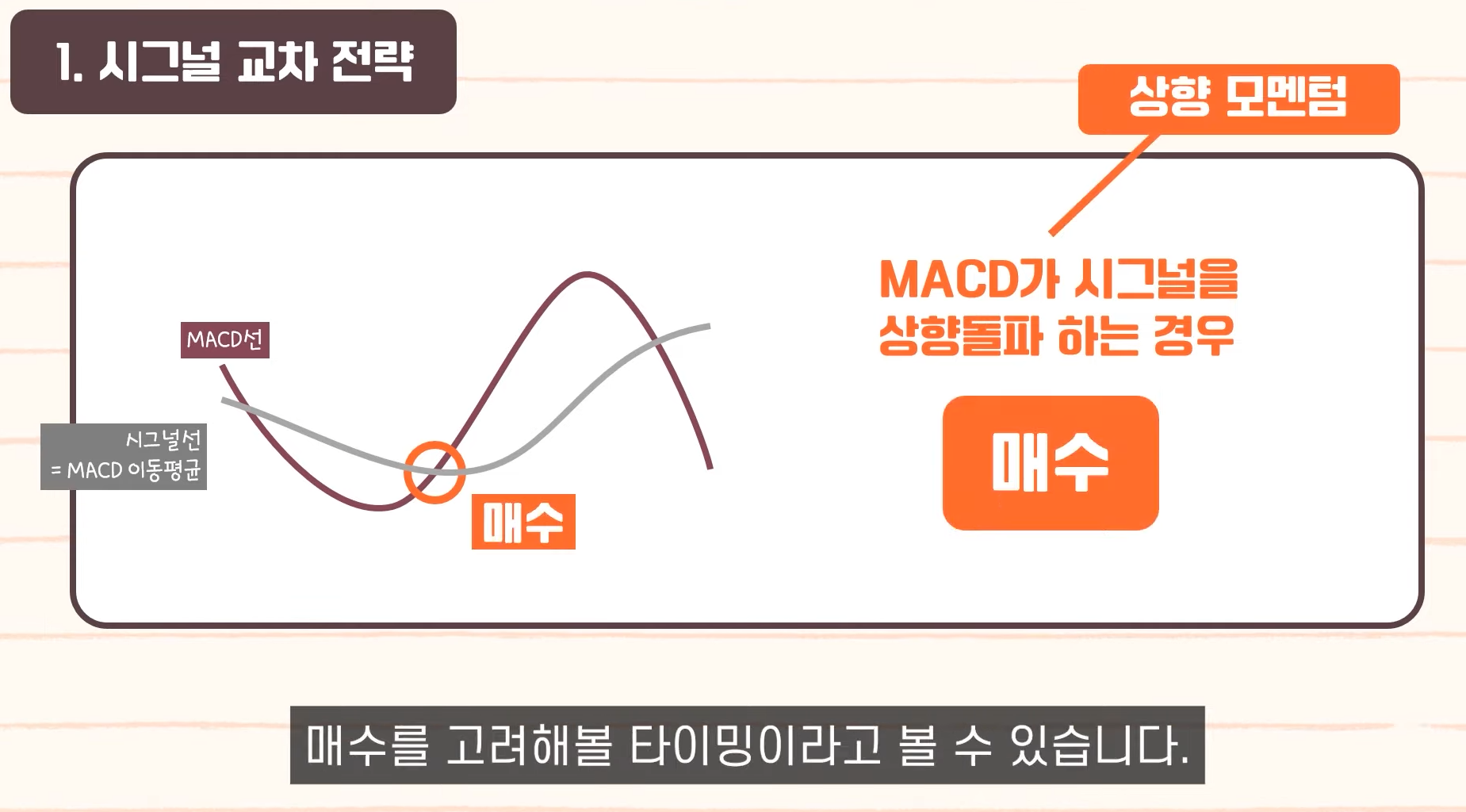 - MACD 골든크로스 동시에 거래량 증가 → 신뢰도 높은 매수 신호.