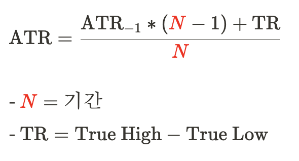 •첫 ATR 값은 N일날부터 계산되며, TR의 단순이동평균으로 계산한다.