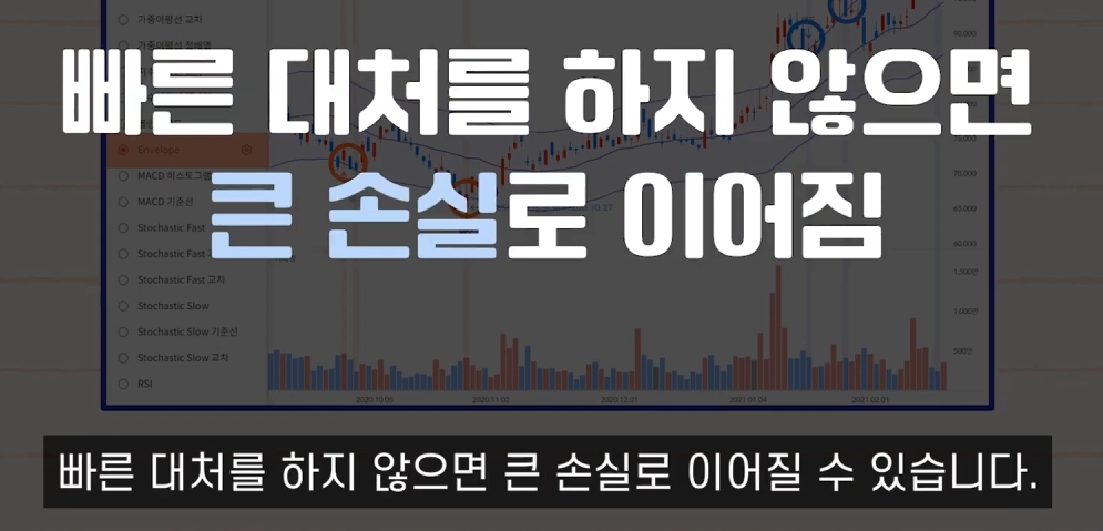 - 주가 붕괴 및 장기 조정 가능성이 있으므로 매도 필요.