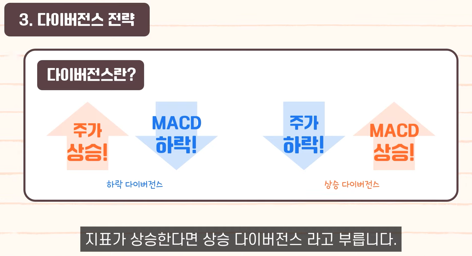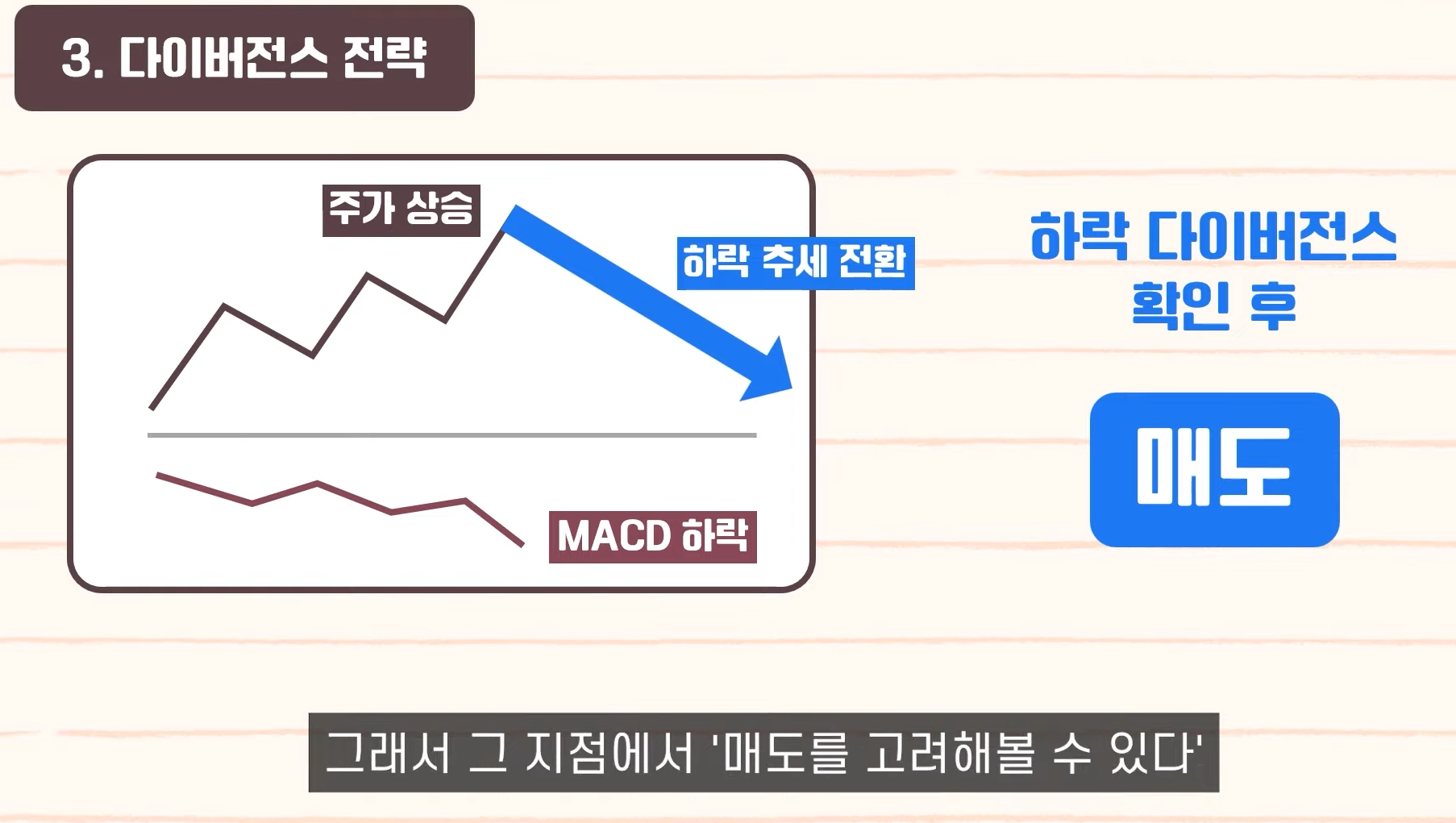 - 다이버전스: 가격과 RSI 방향이 다를 때 반전 가능성.