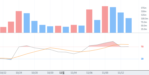 - 주가 상승과 함께 거래 증가 → 매집 물량.