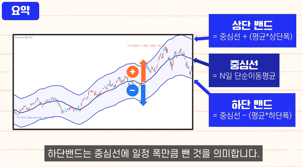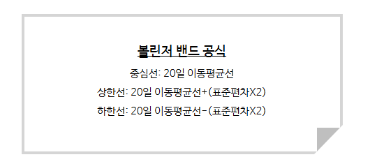 - 중심선: 이동평균선 (일반적으로 20일)