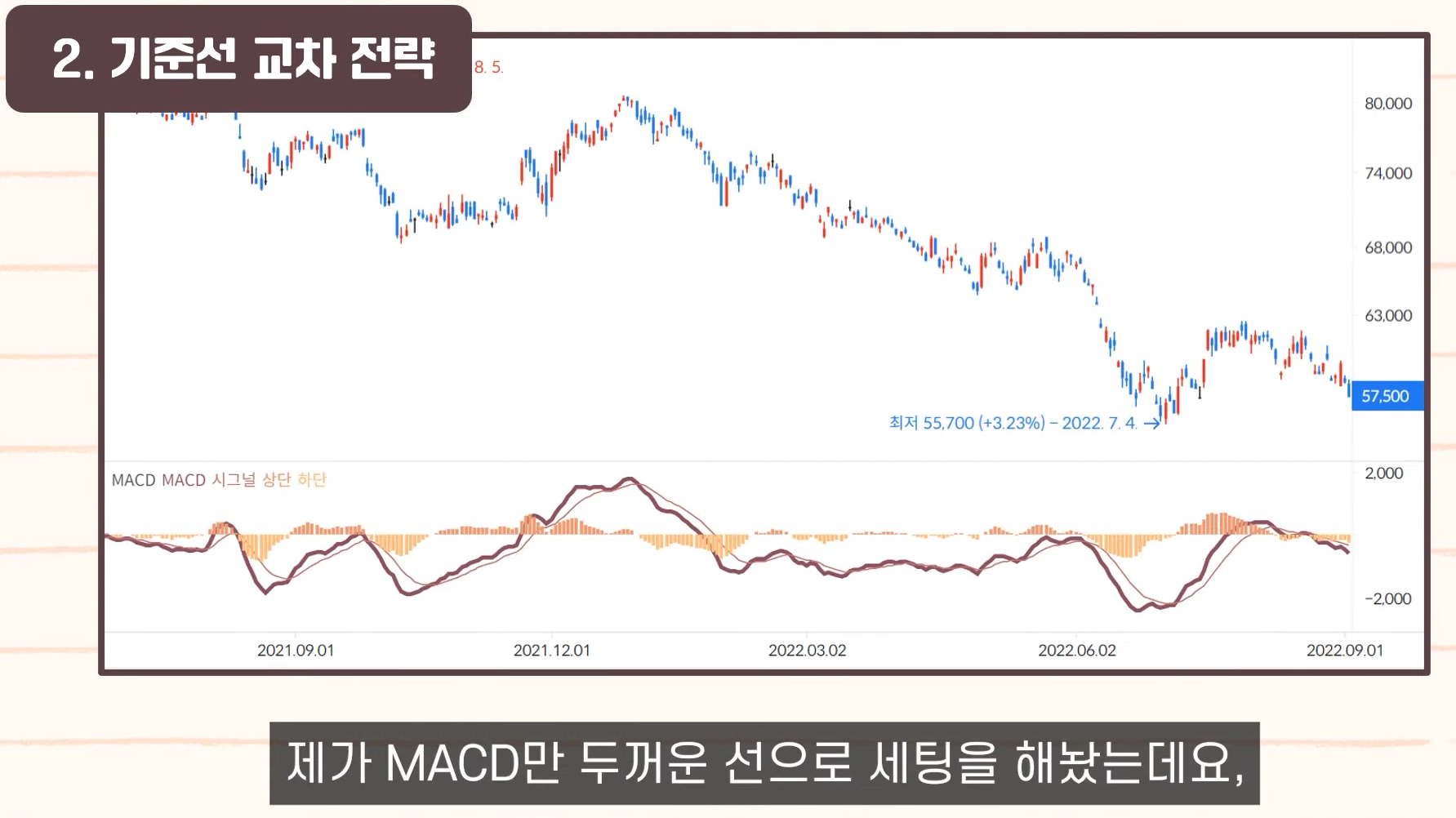 - 구성: 주로 5일, 10일 이동평균선 사용.
