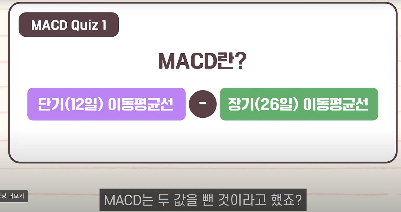 - MACD 라인: (12일 EMA - 26일 EMA)