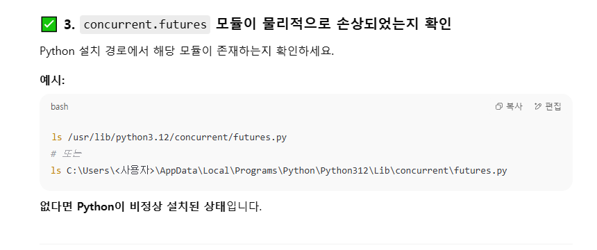 그러면 파이선 설치폴더에서 concurrent.py파일이 있는지 확인해볼것