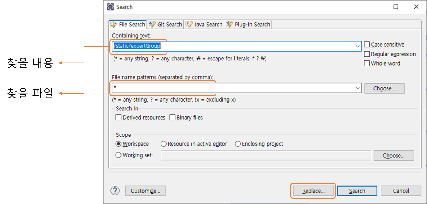 [eclipse] 이클립스에서 문자열 전부 찾아서 변경하기 본문
