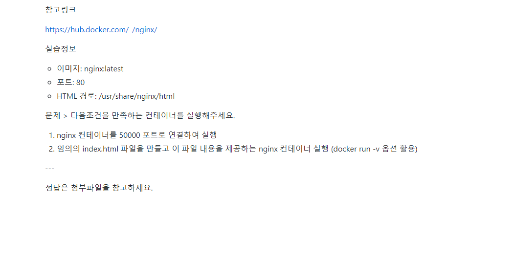 docker run -d --rm --name nginx -p 50000:80 -v /nginx_html:/usr/share/nginx/html nginx:latest