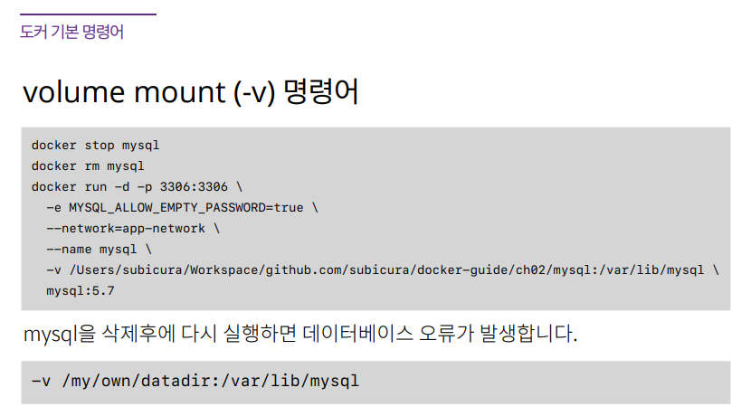 | -v | 호스트와 컨테이너의 디렉토리를 연결 |