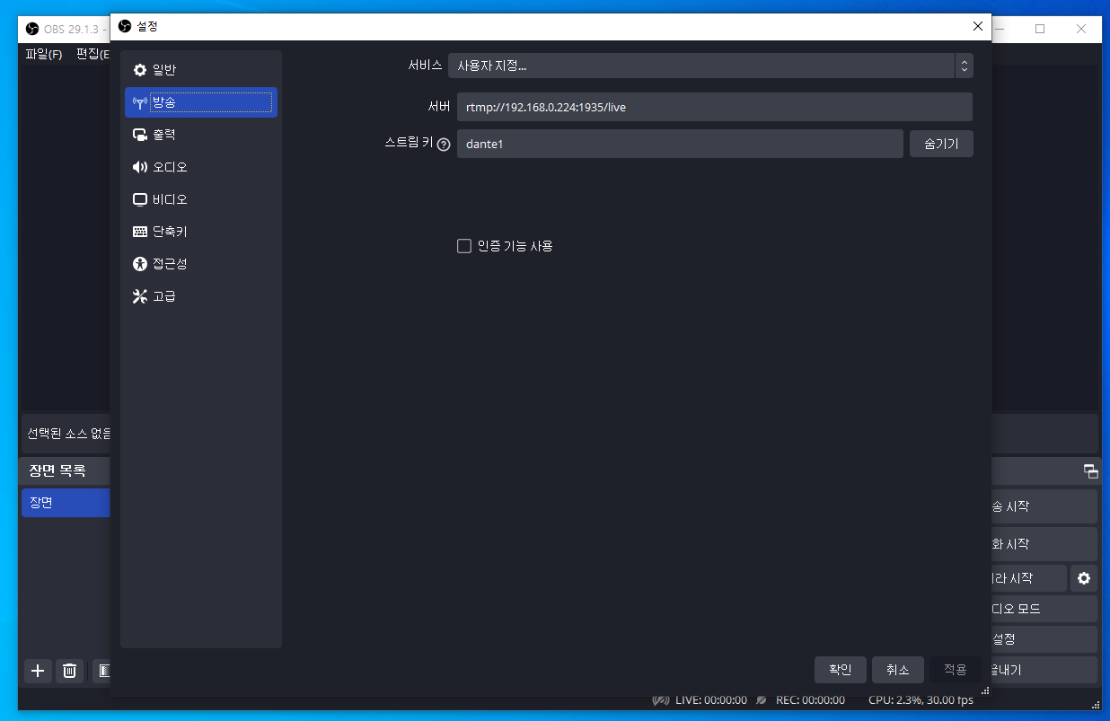 ※저는 vm에 live 서버를 설치하고 진행했습니다. 아프리카tv나 유튜브 같은 경우 live설정을 보고 하시기 바랍니다.
