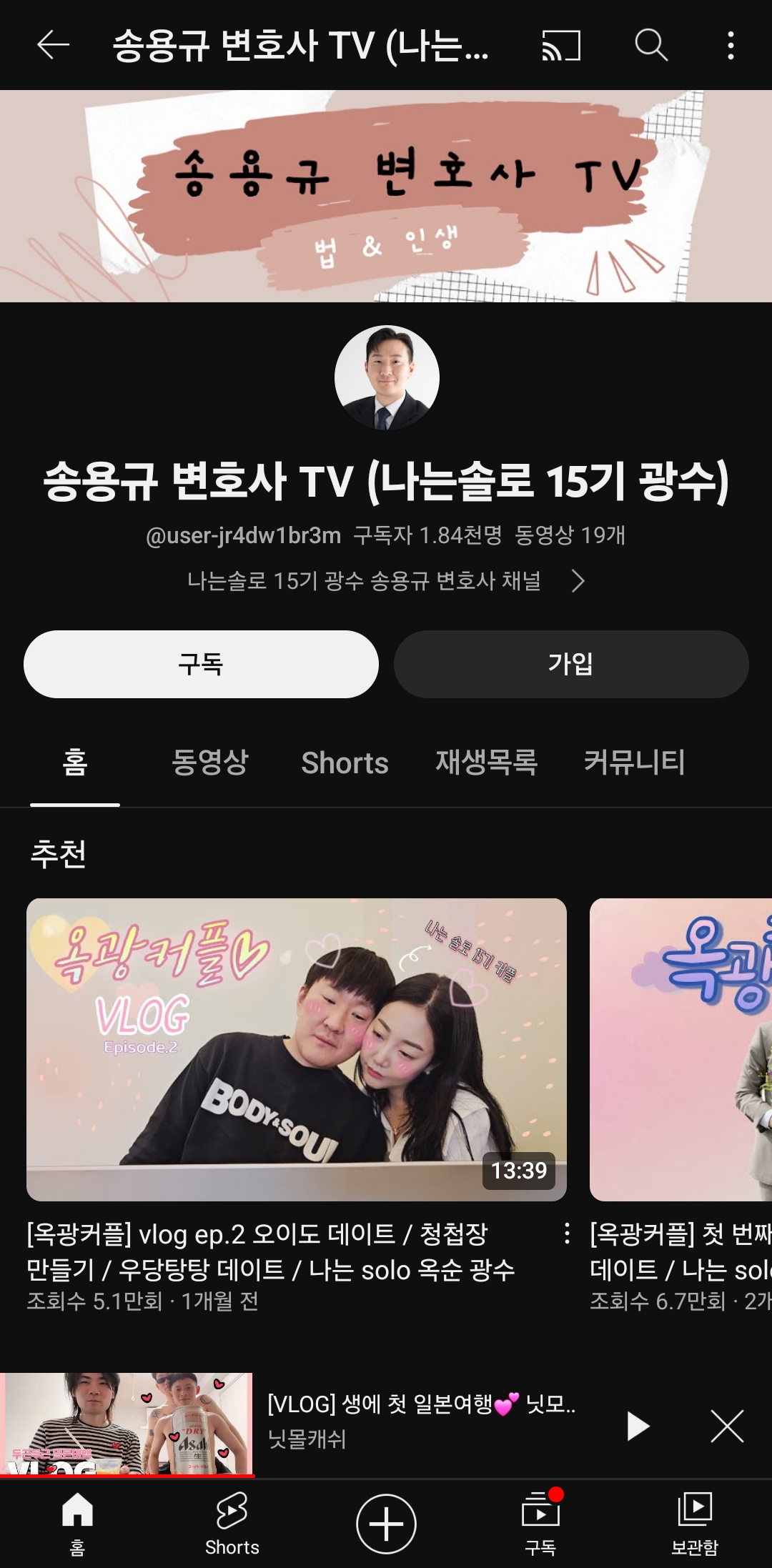 내가 좋아하는 나솔15기 광수님도 유튜브를 해서