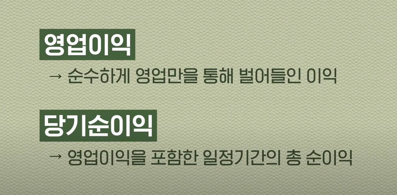 영업이익 : 매출액에서 인건비,자제비,기타등등을 제외하고 벌어들인 금액 = 순수익